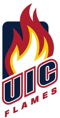 The team colors of UIC Flames are red, flames blue, and yellow.